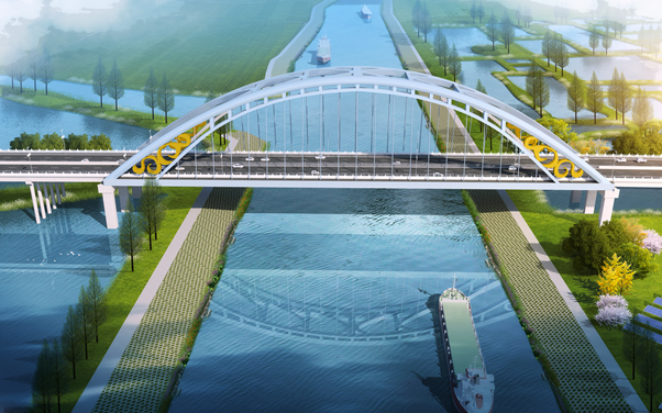 項目主要設置特大橋1座,中橋3座。主橋擬采用210米簡支鋼箱系桿拱(拱肋下側裝飾),以“龍鳳紋玉觽”為設計原型,在拱腳內側處,結合云紋雕花進行鏤空處理。端莊穩重,古色古韻。以植物綠化為主體,以“楚文化”為符號,在道路沿線選取合適節點作為重點打造,通過植物與文化特色明顯的景觀小品搭配,凸顯“魅力楚都”的主題。體現G328文化屬性,打造一條多層次、多色彩的生態道路、綠色長廊、文化創意之路。