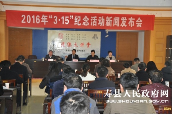 3月14日上午,壽縣召開2016年3·15紀念活動新聞發布會,部署3·15國際消費者權益活動,發布壽縣2015年打假維權十大典型案例,副縣長汪世福出席會議。