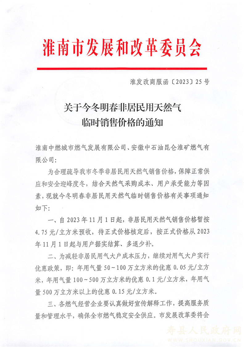 【天然氣】今冬明春非居民用天然氣臨時(shí)銷售價(jià)格