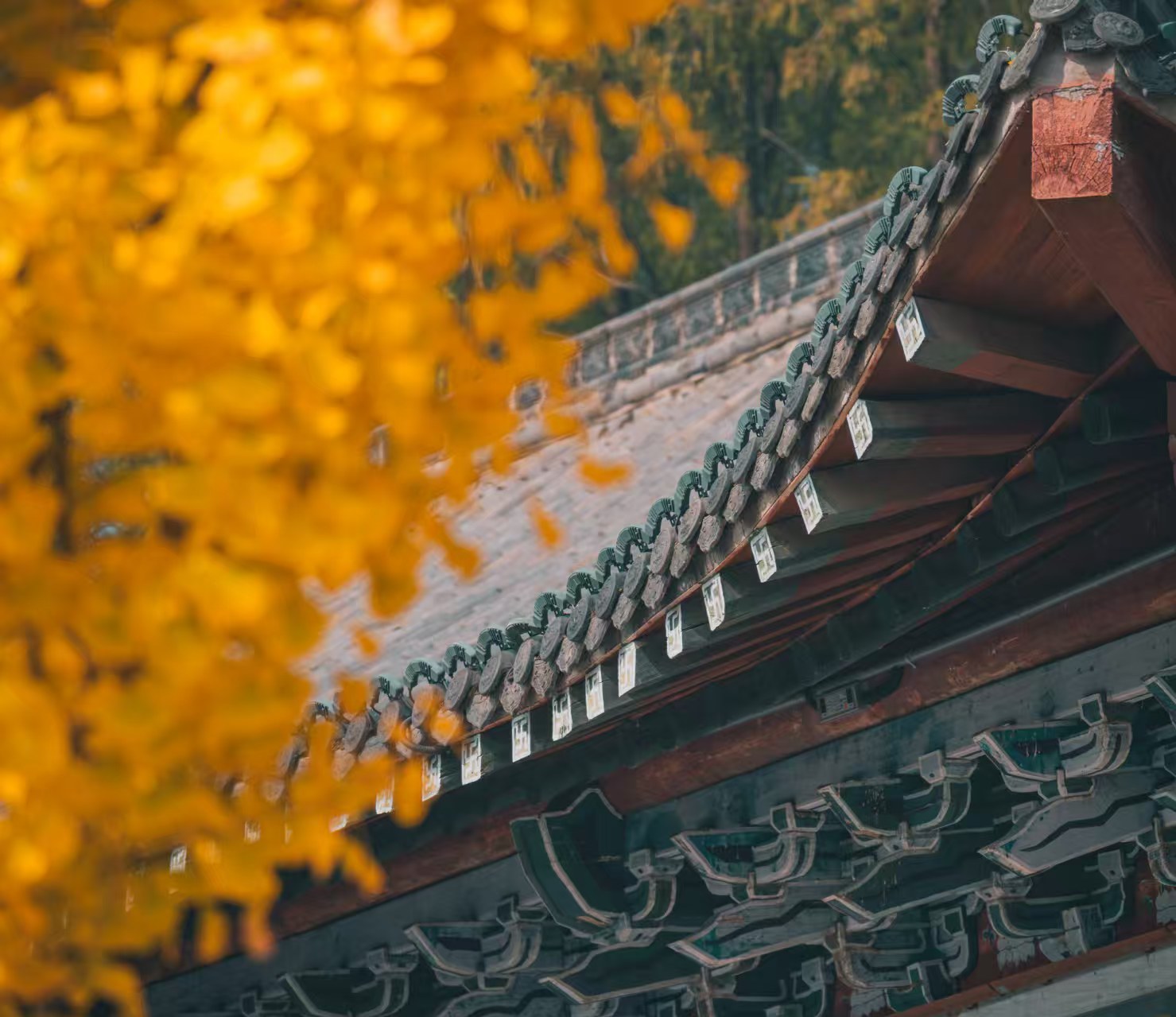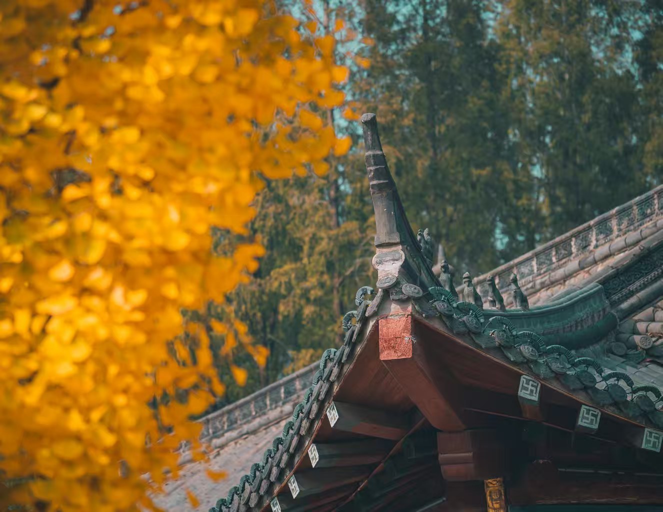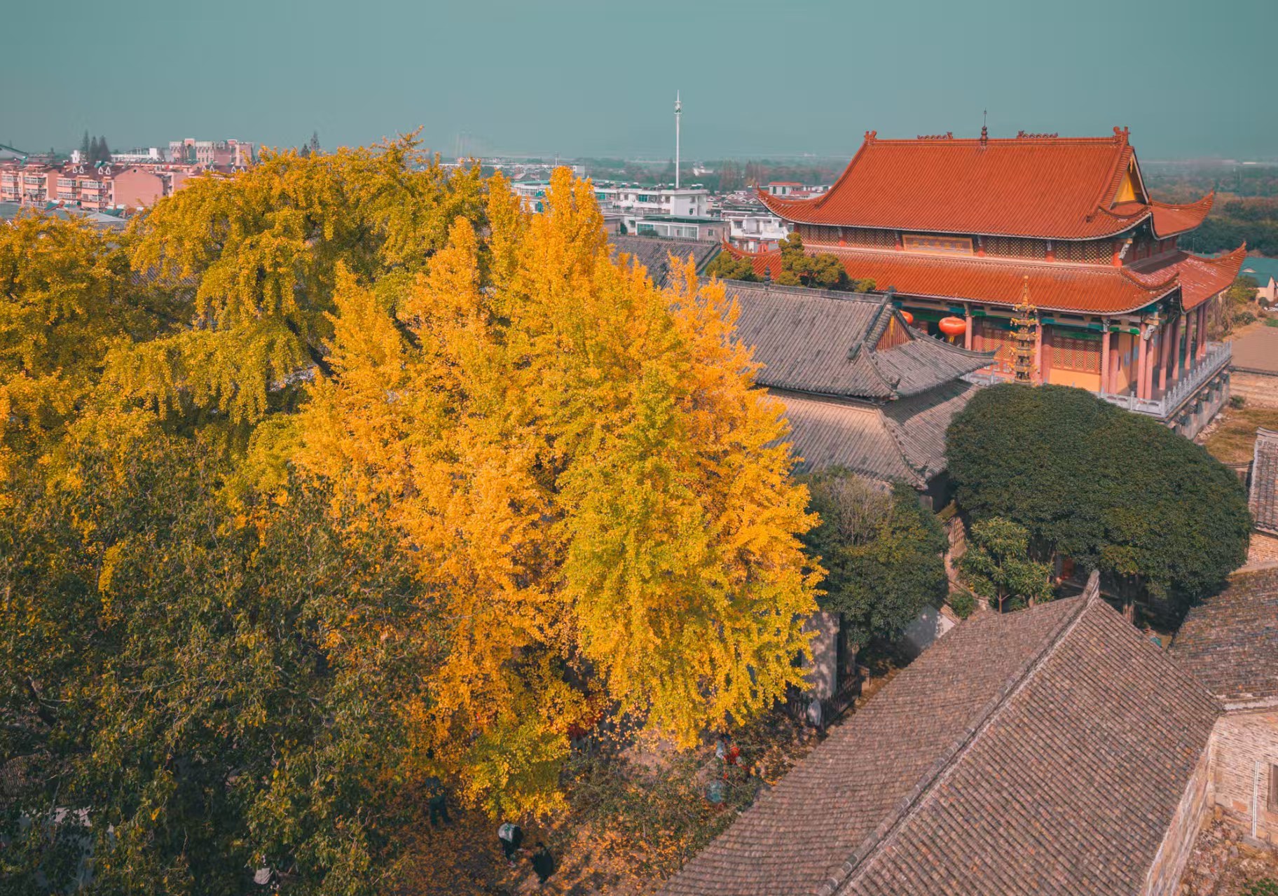 初冬的安徽壽縣報恩寺,千年銀杏早已褪去青衫,身披鎏金鎧甲,在古剎的紅墻黛瓦間熠熠生輝。陽光穿過層層疊疊的扇形葉片,篩下滿地碎金,與寺內的碑刻、經幢相映成趣,恍若將千年時光都沉淀在這一片金黃里。