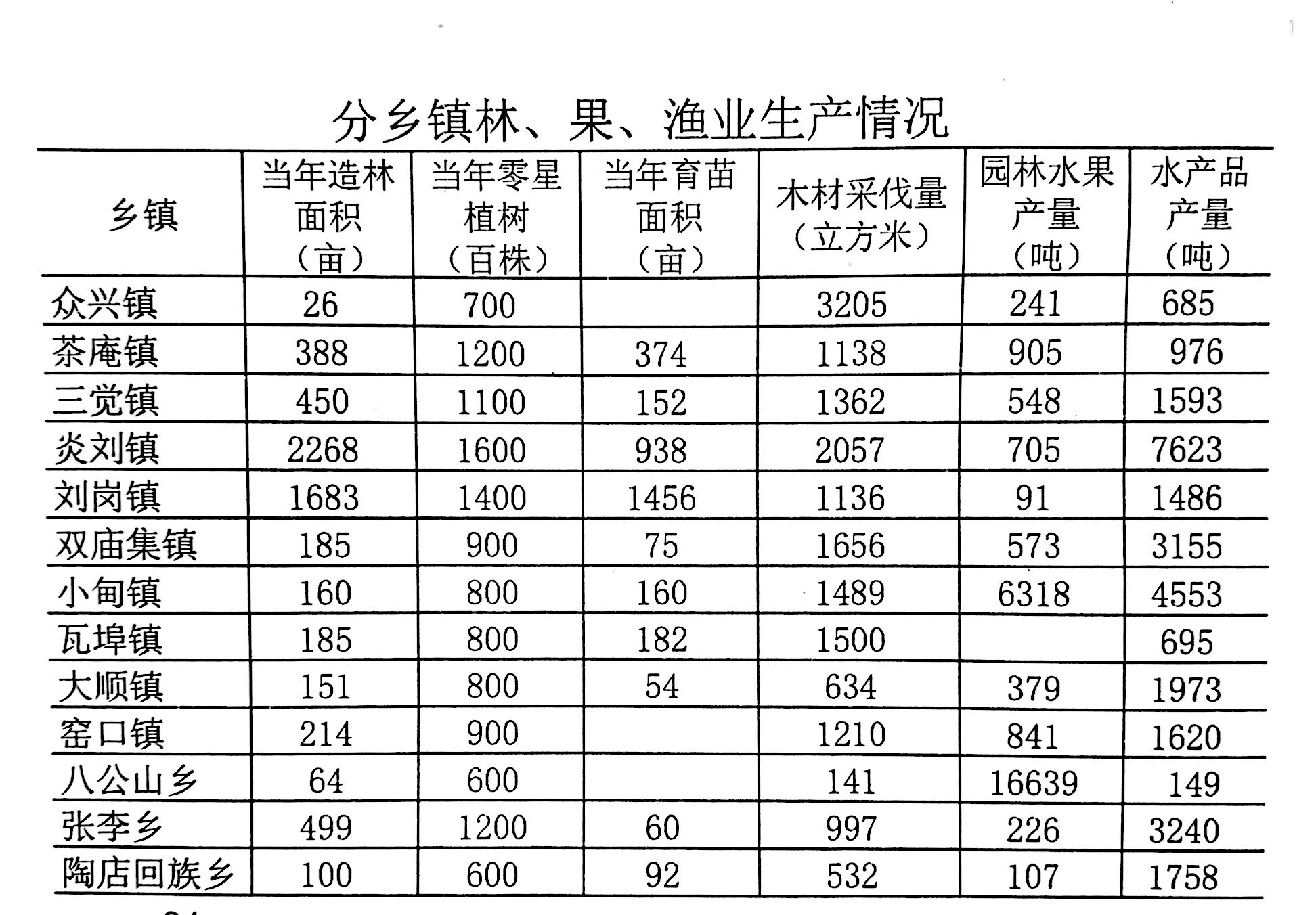 全年實現農林牧漁業總產值達到97.3億元,增長7.96%,其中:林業總產值3.7億元,同比增長19.15%;牧業總產值23.1億元,增長24.87%;漁業總產值21.86億元,增長24.7%。2019年,全年造林面積9469畝 ,零星植樹240萬株,育苗面積6000畝,木材采伐量47526m3,水產品產量99020噸。