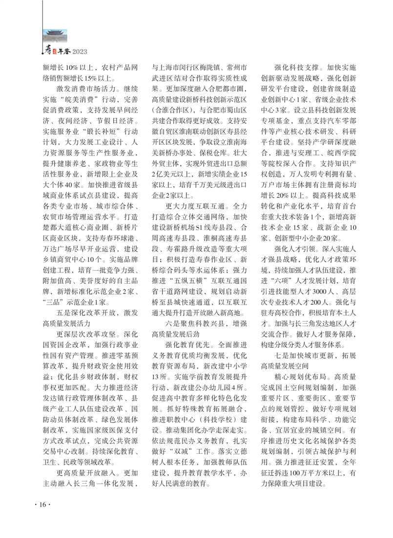 《壽縣年鑒》(2023年卷)