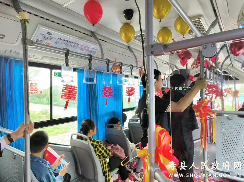 目前,公交婚禮已經(jīng)成為壽縣一道流動(dòng)的文明風(fēng)景線,滿載著新人愛意,駛向幸福驛站,簡約適度的婚俗觀念也在古城壽縣蔚然成風(fēng)。