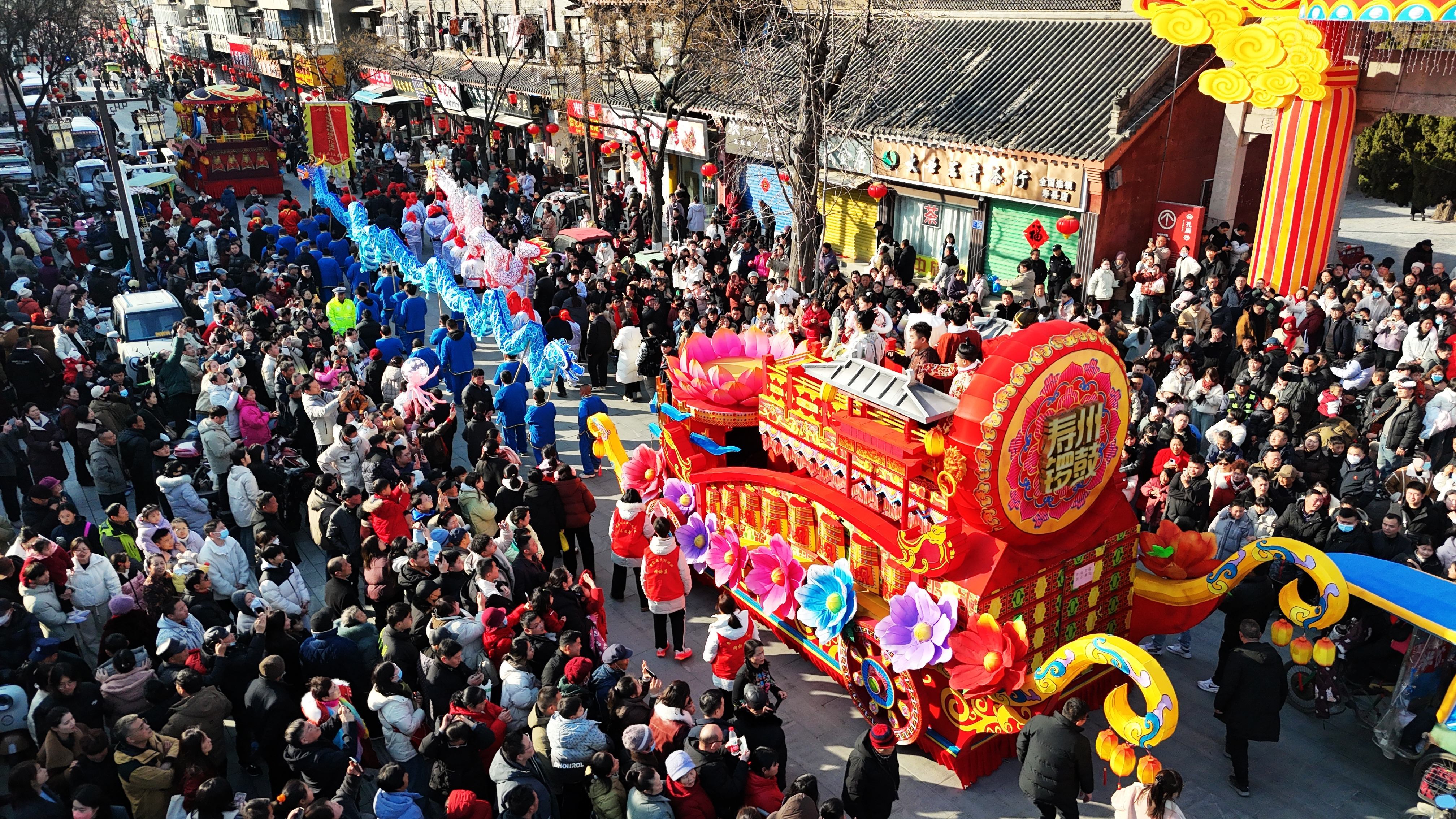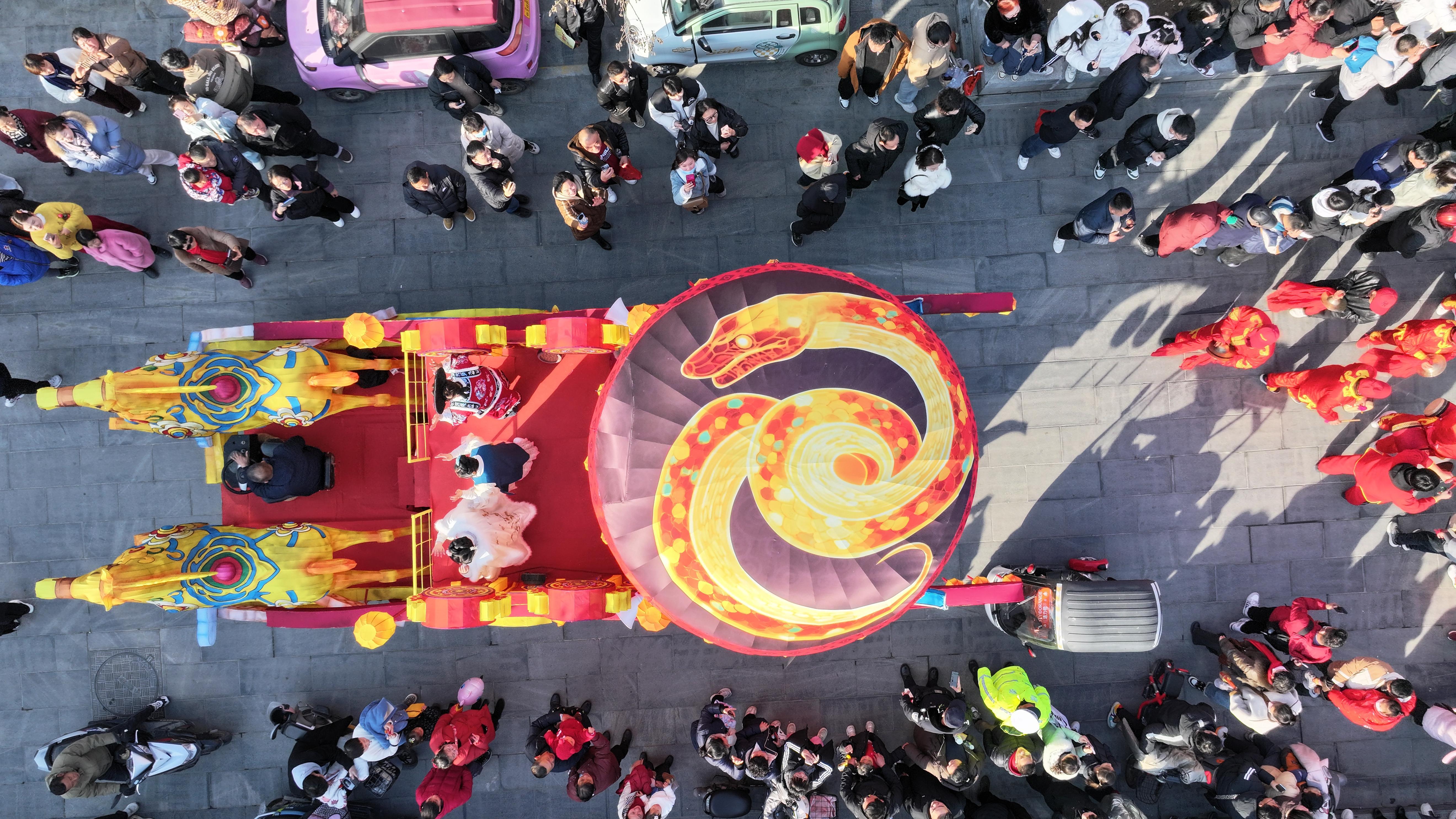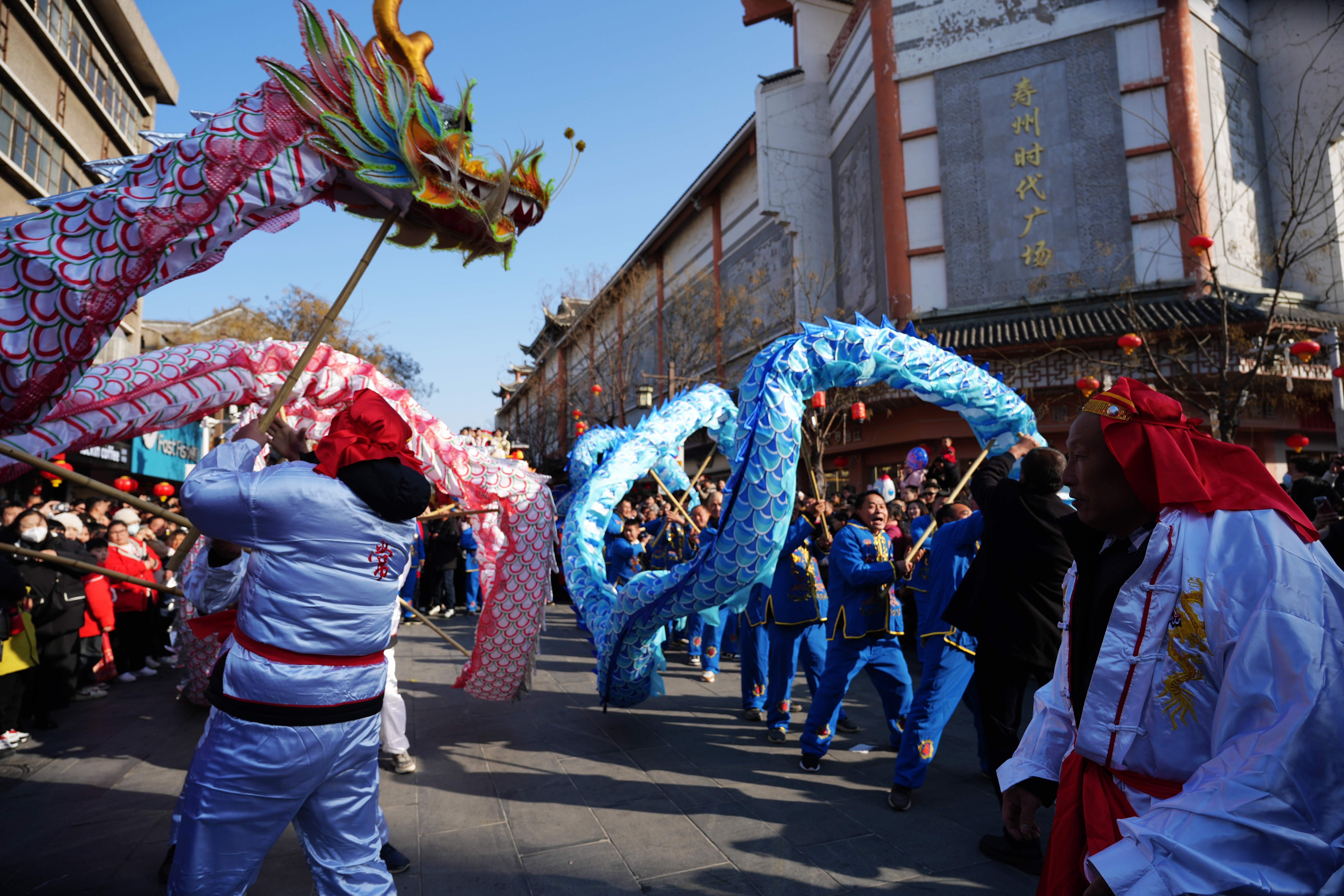 春節假期,淮南壽縣張燈結彩,喜氣洋洋。舞龍、花車踩街巡游等多彩非遺活動輪番上演,市民與游客在濃濃的喜慶氛圍中歡慶新春佳節。