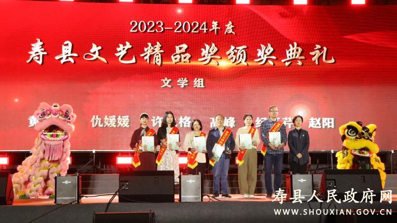 與此同時,2023—2024年度壽縣文藝精品獎頒獎典禮同步舉行。晚會分別為文學組,攝影、音樂舞蹈組,美術、民間文藝組,書法、戲劇曲藝組獲獎嘉賓頒獎。該獎項旨在表彰壽縣文藝領域的優秀創作者,激勵本土文藝創新,充分體現了壽縣“文化強縣”戰略的豐碩成果,強化壽縣“中國文學之鄉”的品牌形象。