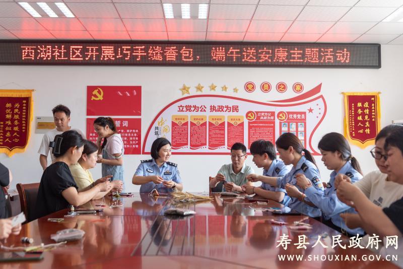 又近端午,粽葉飄香。為大力弘揚中華優秀傳統民俗文化,共創警民魚水之情,5月29日,八公山派出所聯合壽春鎮西湖社區,與社區居民一起舉辦了一場主題為“巧手縫香包 端午送安康”喜聞樂見的文化活動。