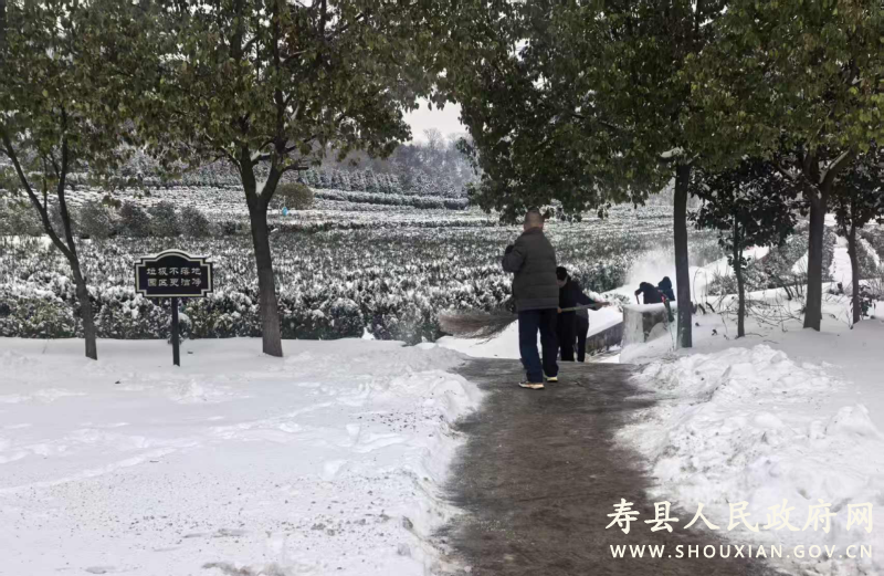 近日,壽縣境內突降大雪,壽縣八公山林場公墓區域道路積雪深厚,為確保墓園區域內祭祀道路暢通無阻,保障來往群眾行走安全,壽縣自然資源和規劃局積極組織黨員干部開展墓園道路掃雪除冰行動。