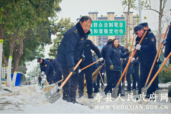 全員出擊,全力保障 壽縣城管局鏟冰除雪保暢通