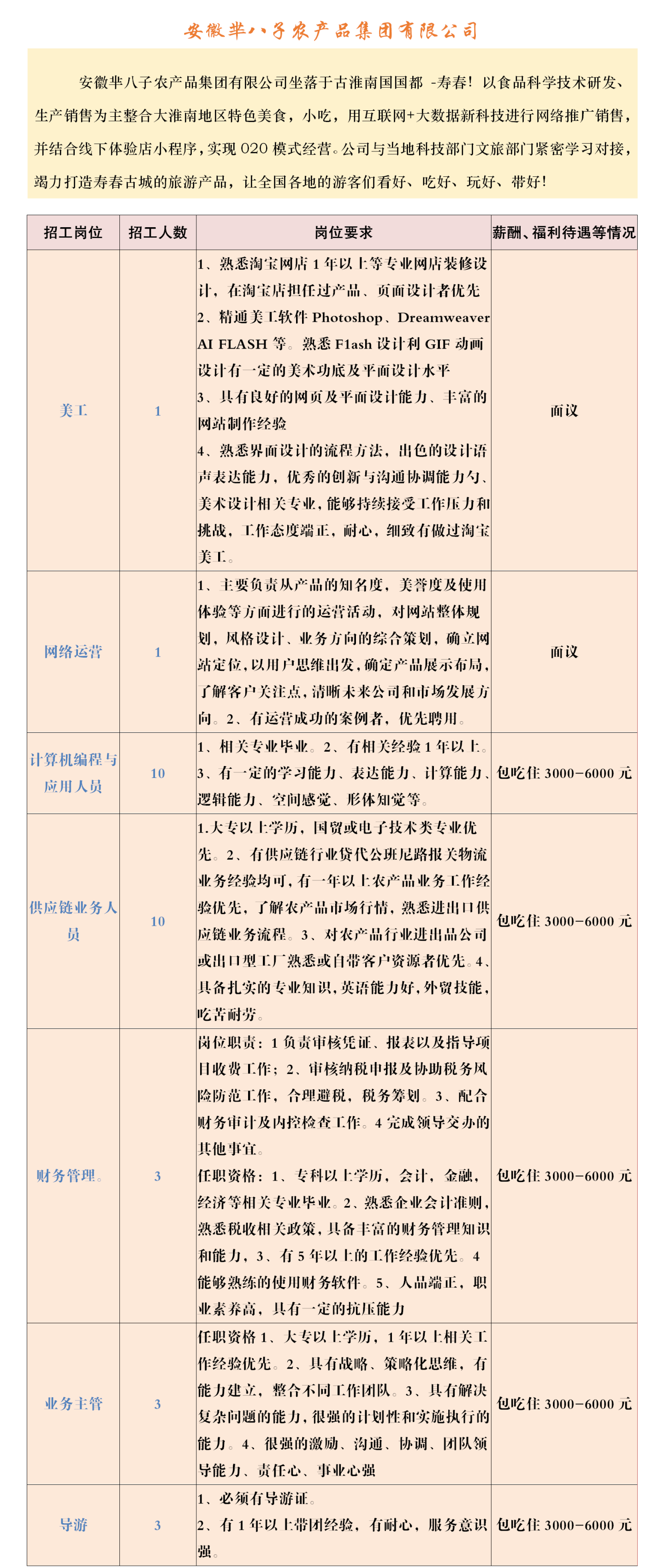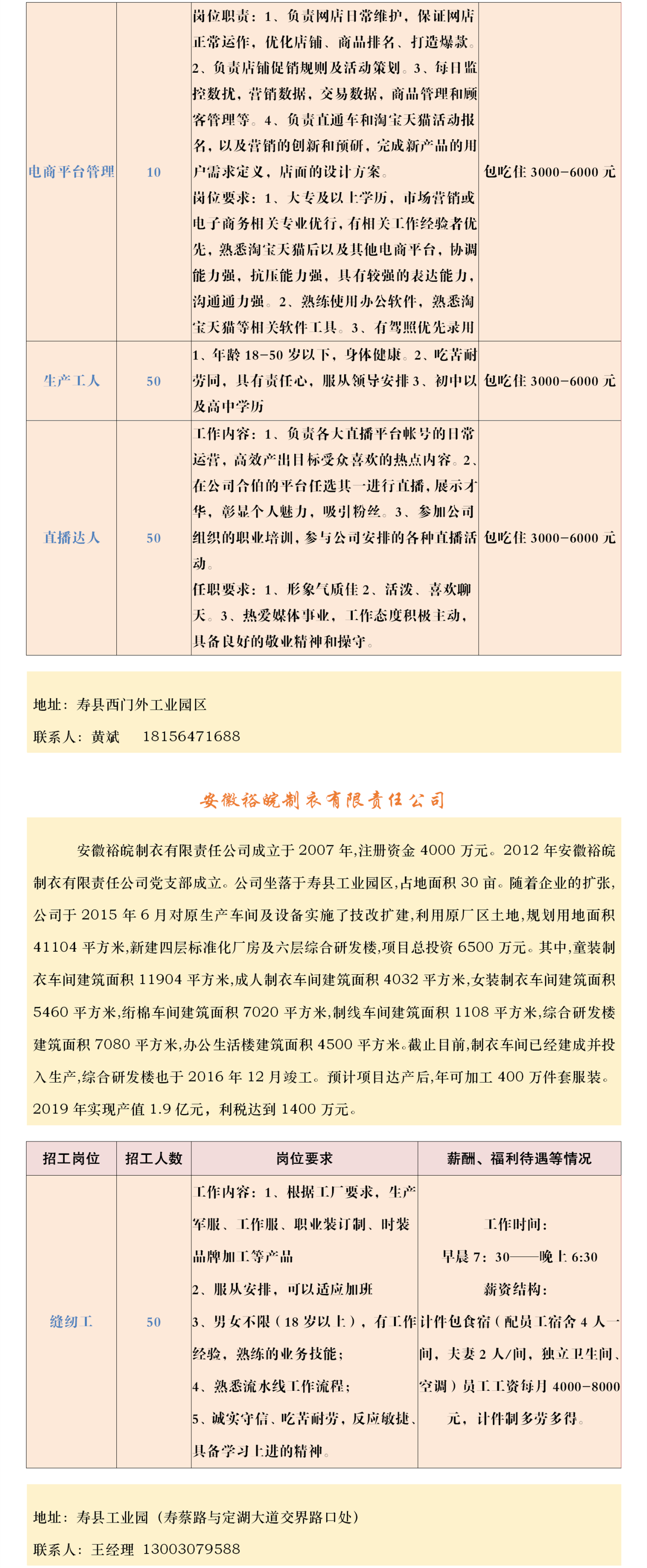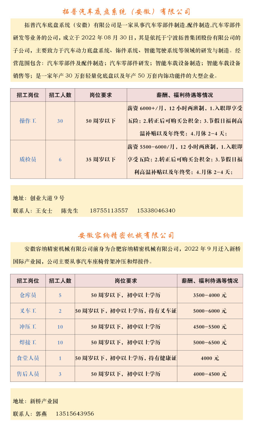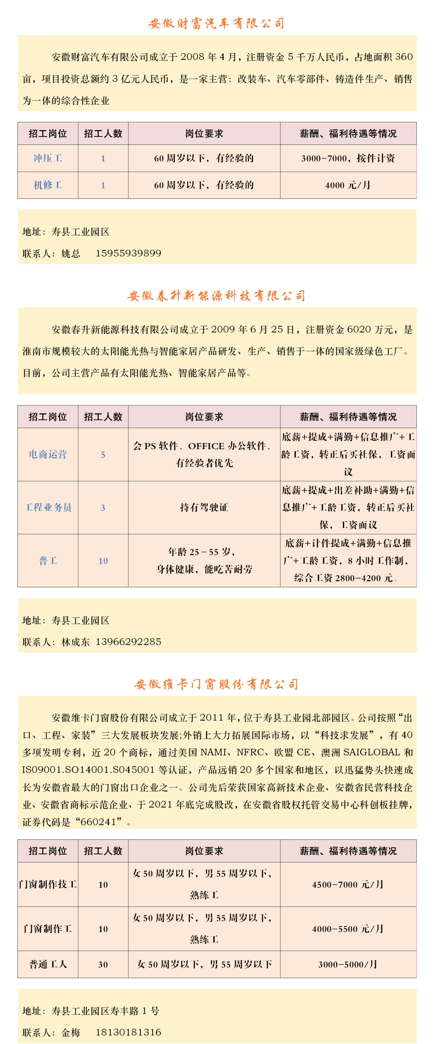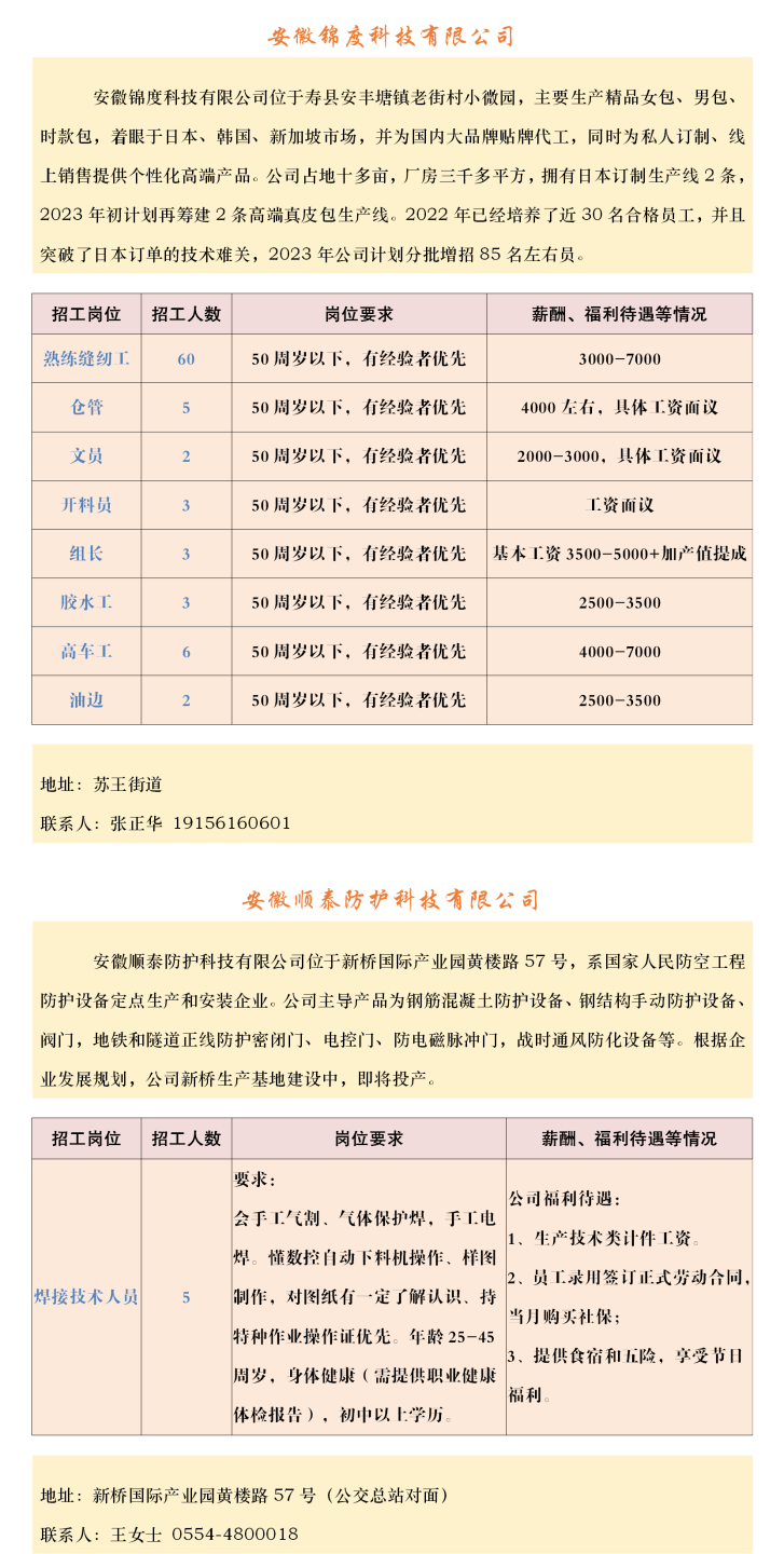 【招聘】壽縣2023年春風行動暨就業援助月企業招聘信息表(十)