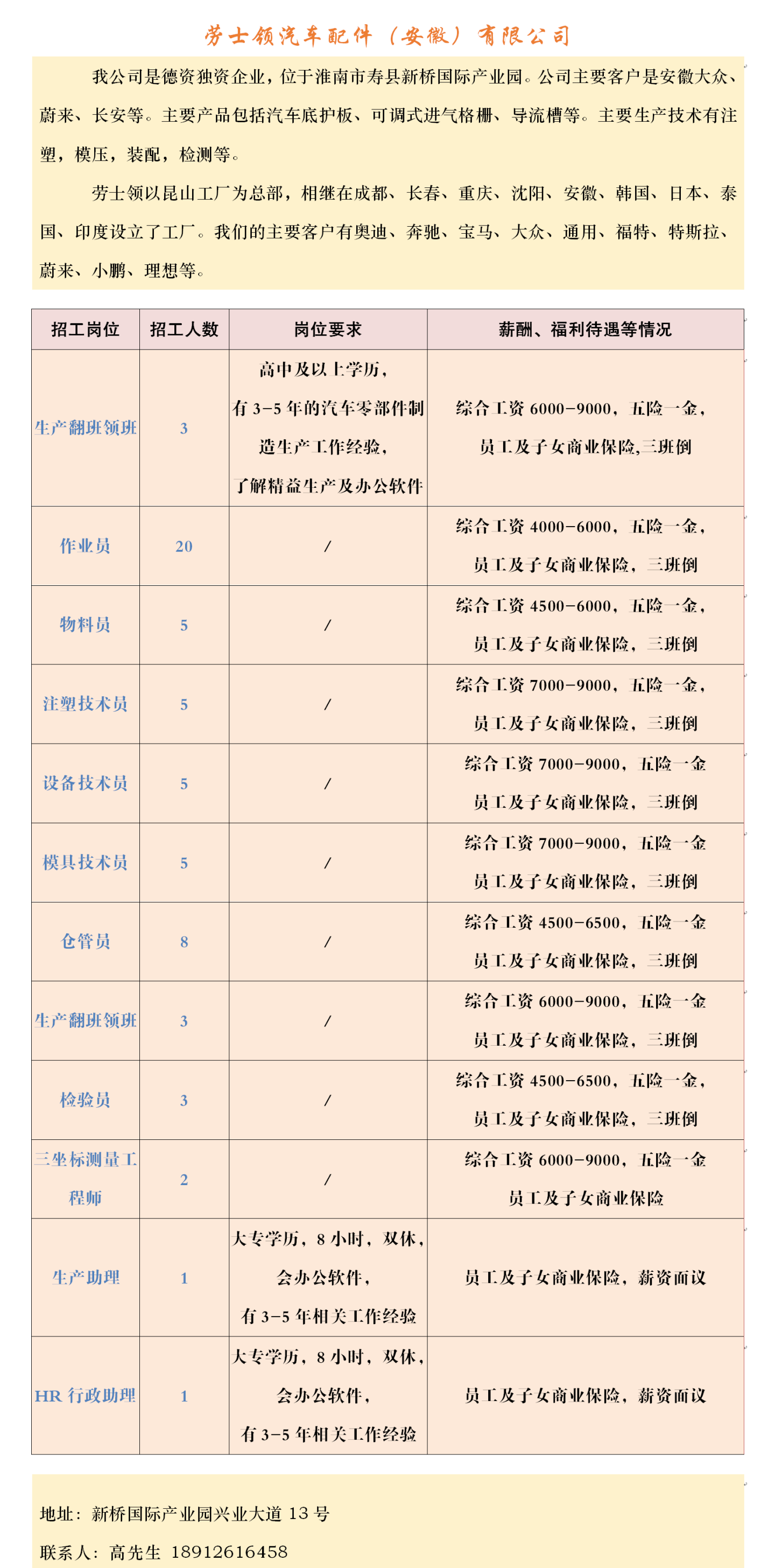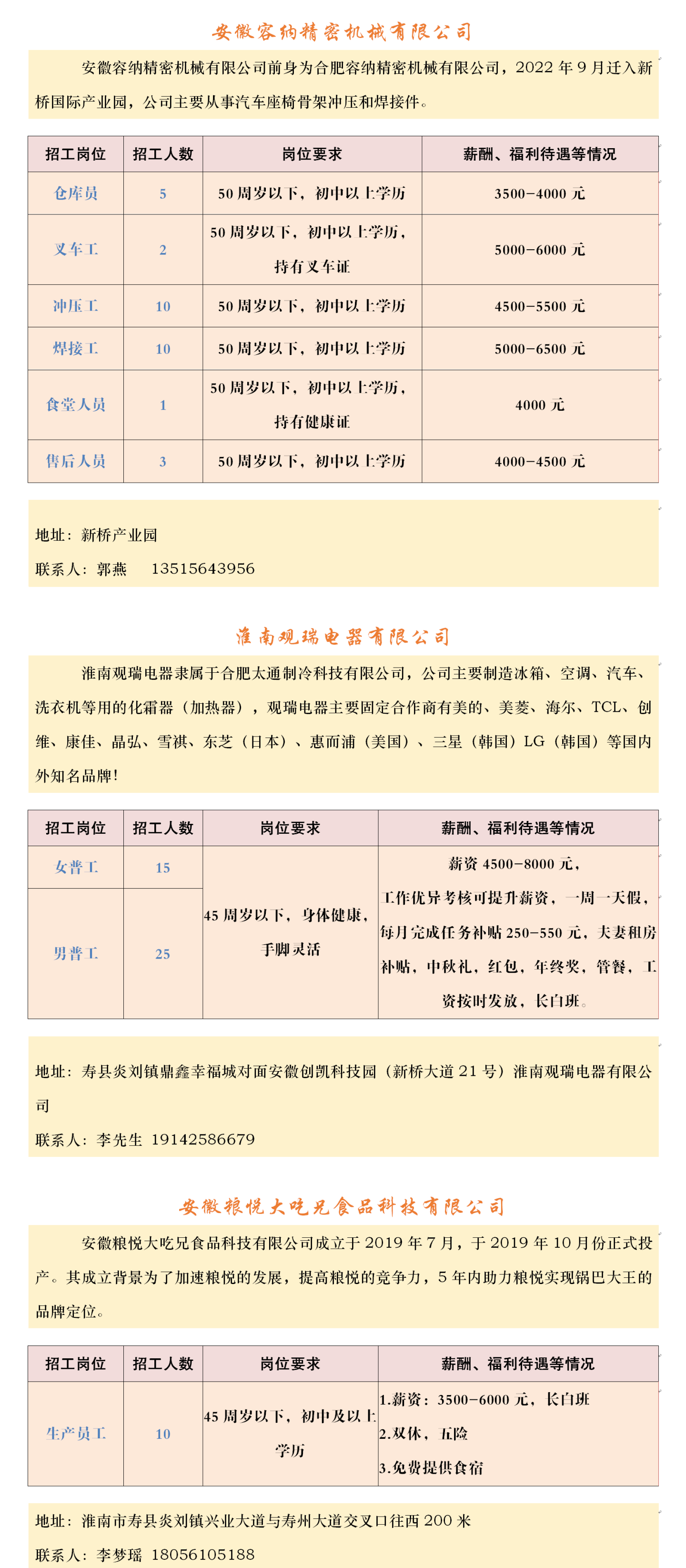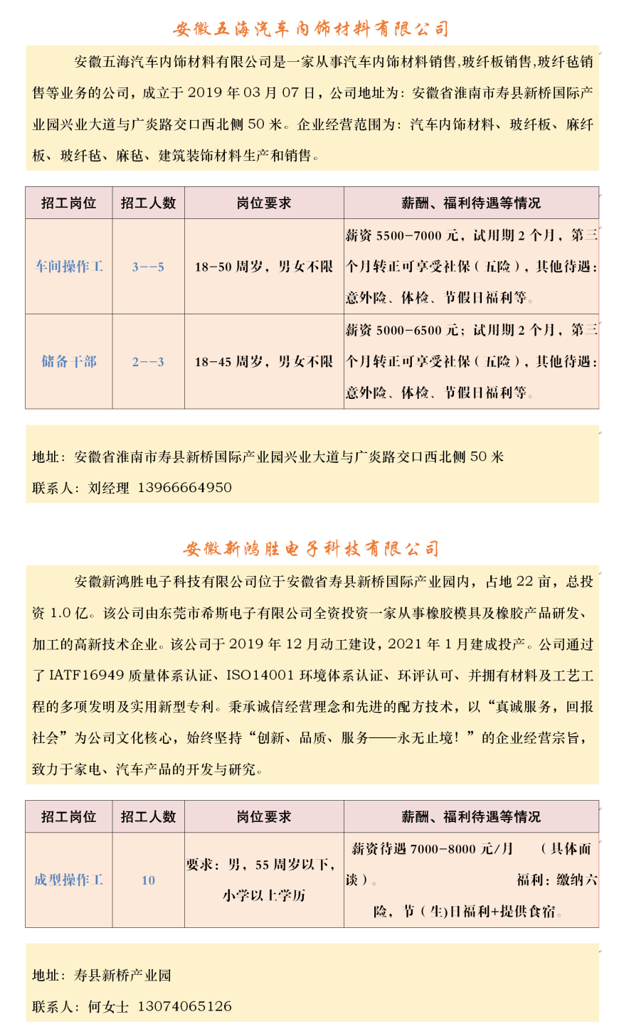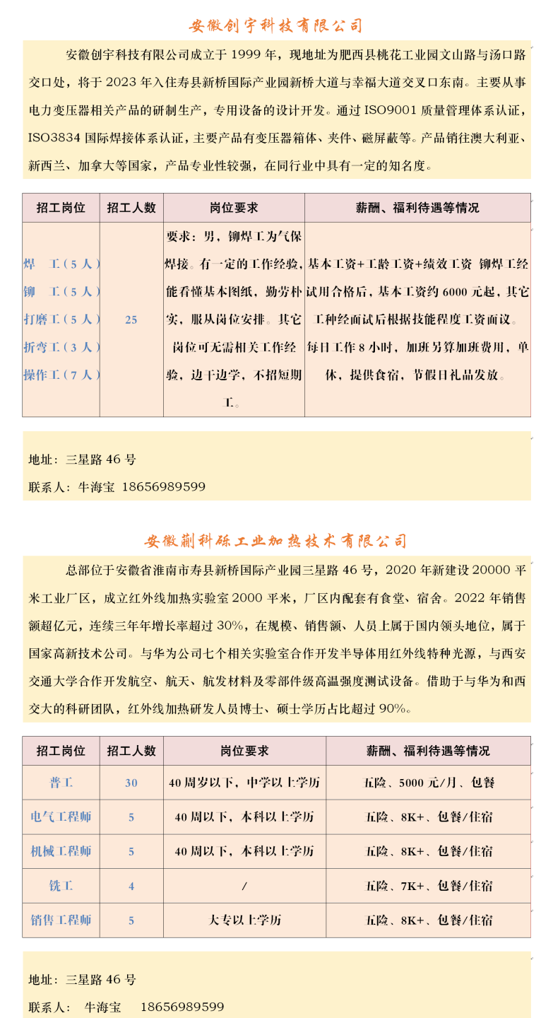 【招聘】壽縣2023年春風行動暨就業援助月企業招聘信息表(十一)