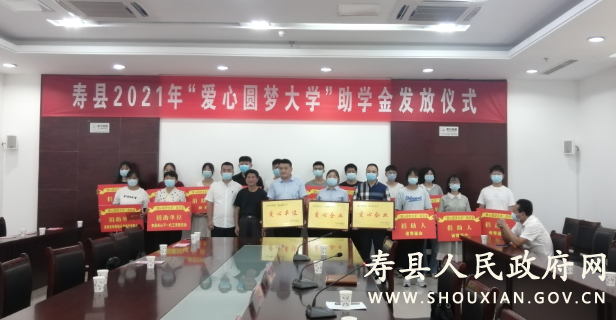 近日,壽縣團(tuán)縣委舉行2021年度“愛心圓夢大學(xué)”助學(xué)金發(fā)放儀式。團(tuán)縣委、縣關(guān)工委有關(guān)負(fù)責(zé)同志,愛心企業(yè)代表壽縣壽州人電子商務(wù)有限公司、淮南市壽蜀錦天房地產(chǎn)有限公司等愛心捐贈單位有關(guān)負(fù)責(zé)人及社會愛心人士,部分縣屬學(xué)校團(tuán)委書記、受助學(xué)生及家長代表參加活動。