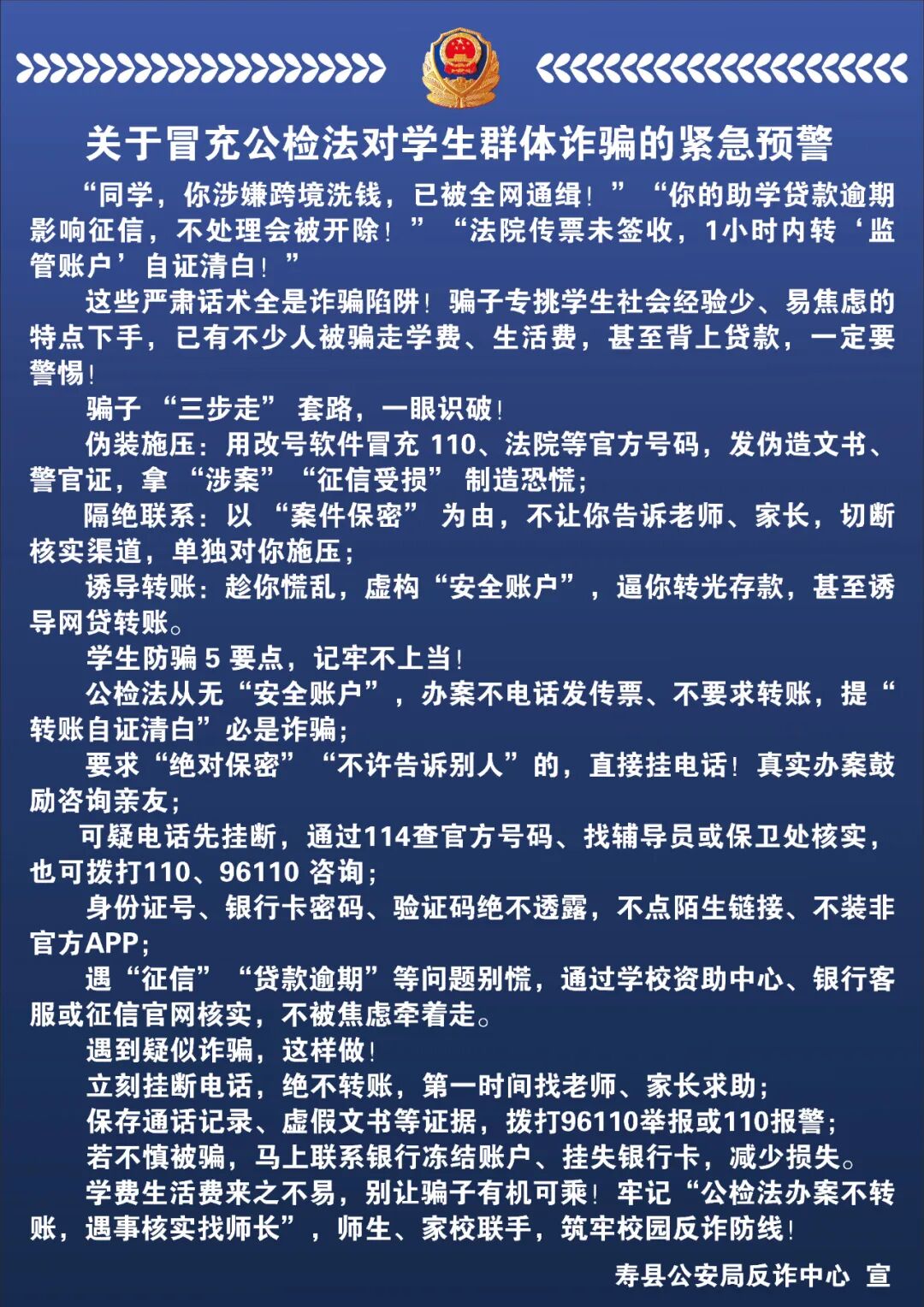 關(guān)于冒充公檢法對(duì)學(xué)生群體詐騙的緊急預(yù)警