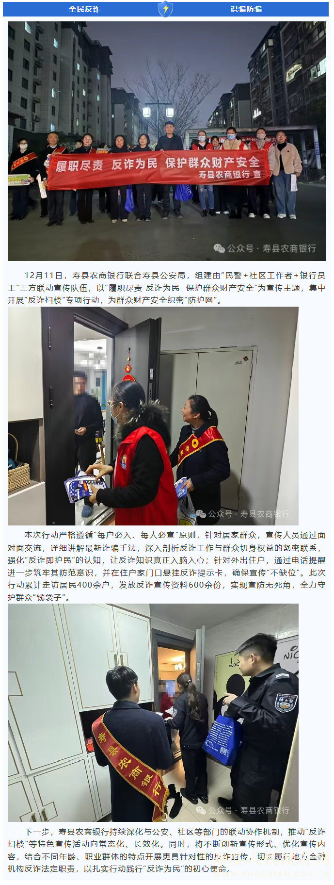 守護居民“錢袋子”!壽縣“警銀”聯合開展反詐掃樓行動