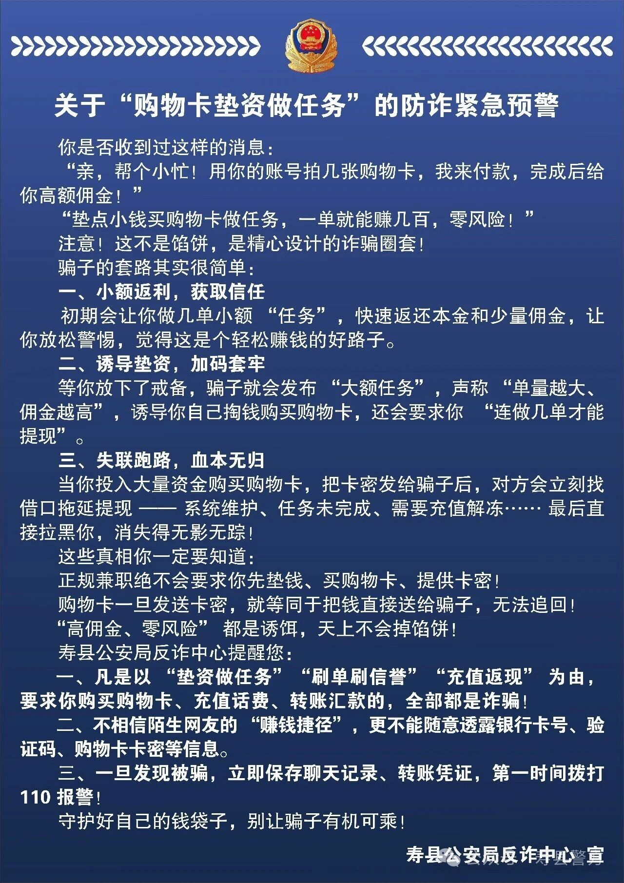 反電信網(wǎng)絡(luò)詐騙 | 關(guān)于"購物卡墊資做任務(wù)"的防詐緊急預(yù)警
