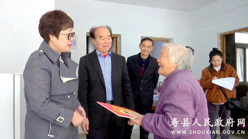 慰問(wèn)人員先后深入到壽春鎮(zhèn)花園社區(qū)壽濱小區(qū)101歲的張修蘭、壽濱村城南小區(qū)100歲的路福珍老人以及興隆村九龍集新街117歲的王道英老人家中,為她們送上慰問(wèn)金并致以節(jié)日的祝福。在高壽的王道英老人家中,慰問(wèn)人員與老人家屬親切交談,詳細(xì)詢問(wèn)老人的身體狀況、日常飲食和生活起居等情況,叮囑家屬要繼續(xù)用心照料,讓老人在溫馨和睦的家庭氛圍中安享晚年。