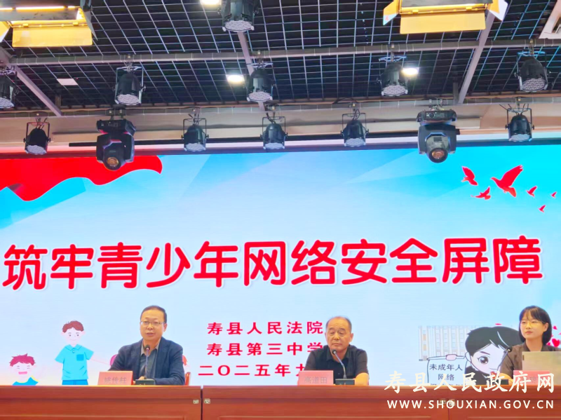在數(shù)字化浪潮席卷的當下,網(wǎng)絡已成為未成年人學習、娛樂與社交的重要陣地。然而網(wǎng)絡空間的復雜性與不確定性,也給未成年人的成長帶來了諸多潛在風險。為增強未成年人網(wǎng)絡安全意識,提升自我保護能力,日前,淮南市壽縣人民法院法治副校長和相關法官來到壽縣三中,開展了一場別開生面的未成年人網(wǎng)絡安全保護法治課。