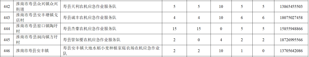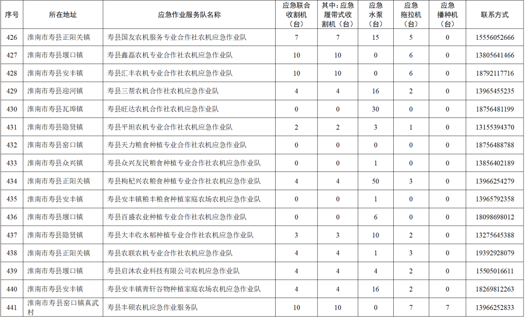 安徽省農機應急作業服務隊信息表(壽縣部分)