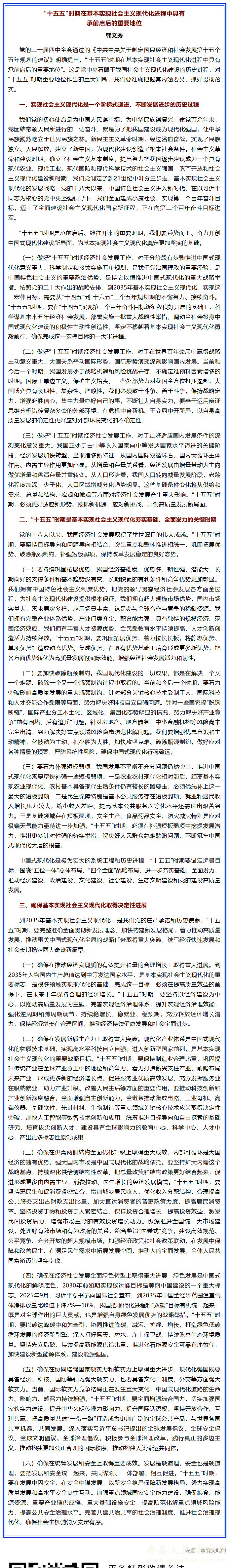 “十五五”時期在基本實現社會主義現代化進程中具有承前啟后的重要地位