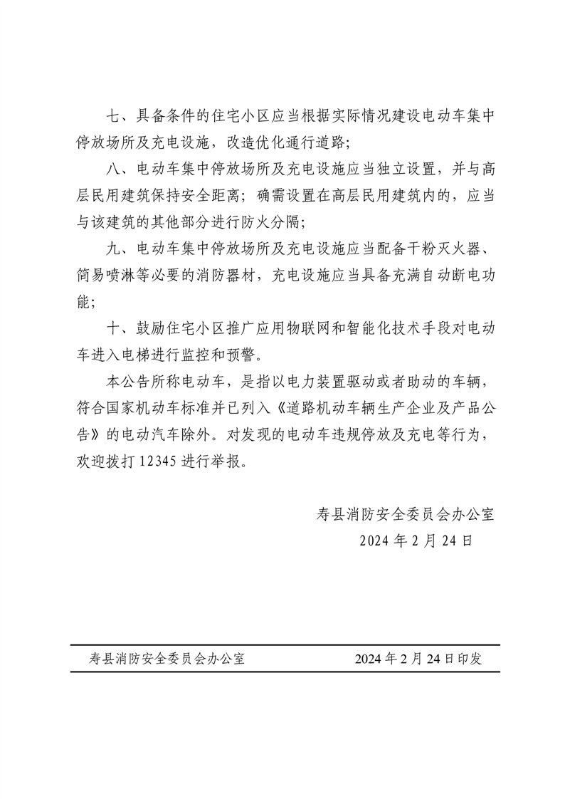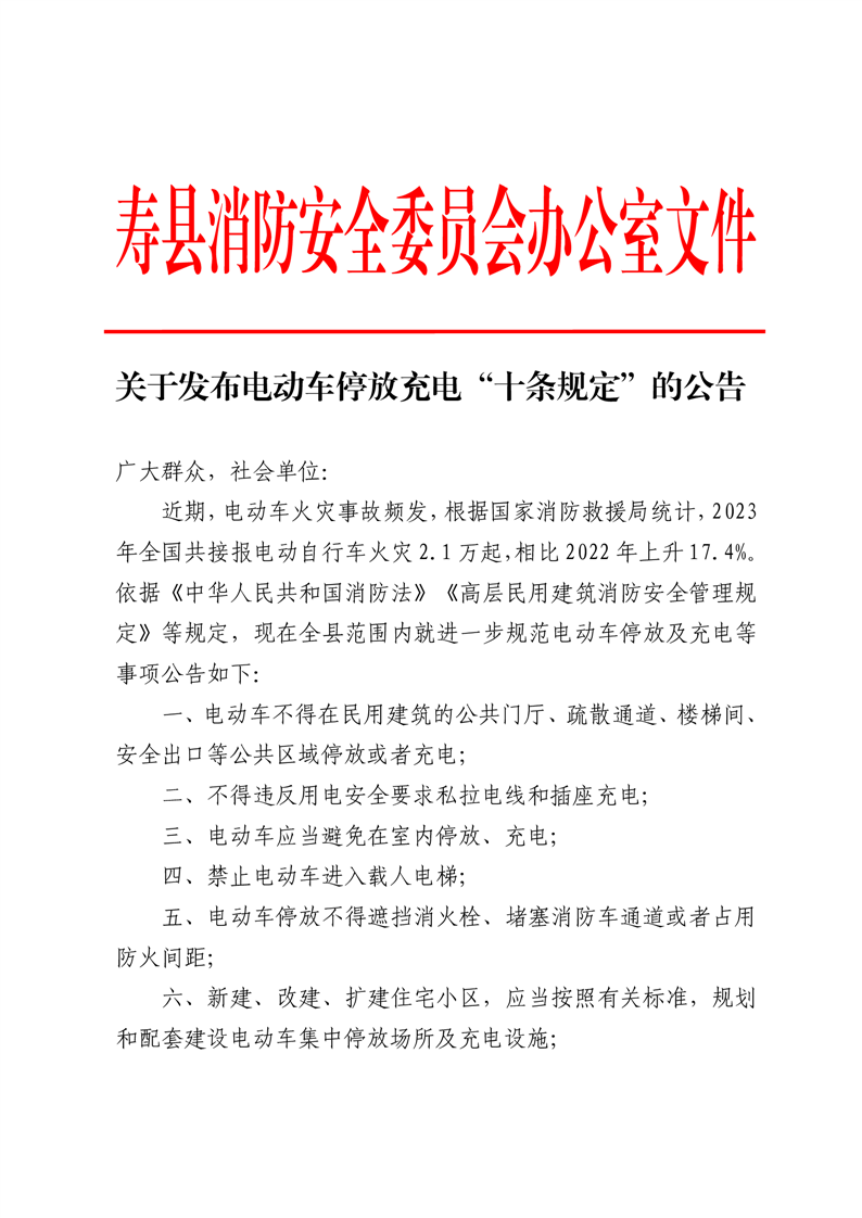 關于發布電動車停放充電十條規定的公告