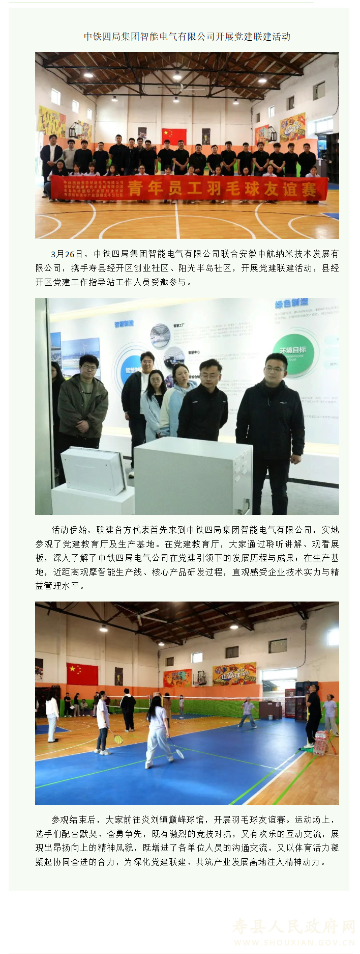 中鐵四局集團智能電氣有限公司在縣經開區開展黨建聯建活動