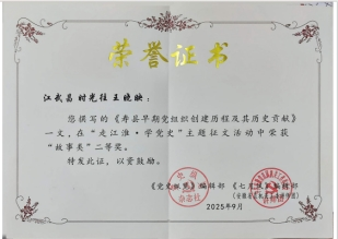中唯一一個做史志綜合工作交流發(fā)言的單位。同時,全年壽縣檔案館(縣委黨史和地方志研究室)還有多部作品榮獲省級表彰。其中,我單位與淮南市委組織部、壽縣縣委組織部聯(lián)合制作、拍攝的《淮上赤子,黃埔先驅》電教片,被中共安徽省委組織部評為“精品黨課”;在安徽省委黨史研究院《黨史縱覽》編輯部、安徽省直機關工委《七月風》編輯部聯(lián)合舉辦的“走江淮、學黨史”主題征文活動中,我單位撰寫的《壽縣早期黨組織創(chuàng)建歷程及其歷史貢獻》一文,榮獲“二等獎”; 在安徽大學歷史學院、《壽縣通史》編纂辦公室、安徽壽州控股集團有限公司聯(lián)合舉辦的“壽春城歷史演變”主題征文活動中,我單位撰寫的《壽縣歷史建制沿革之考析》一文,榮獲“二等獎”。以上成績的取得,體現(xiàn)了壽縣檔案館(縣委黨史和地方志研究室)充分挖掘、利用壽縣檔案和歷史文化資源,宣傳壽縣,推介壽縣,講好壽縣歷史文化故事和紅色故事,在壽縣文旅融合發(fā)展方面貢獻了檔案、史志力量。