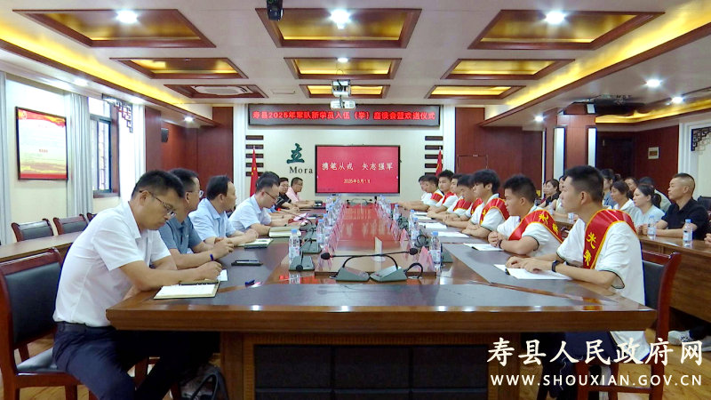 8月1日,壽縣2025年軍隊新學員入伍(學)座談會暨歡送儀式在壽縣一中舉行。副縣長王素苗,縣人武部政委張海深參加座談,并為壽縣一中8名軍校錄取學生佩戴大紅花。