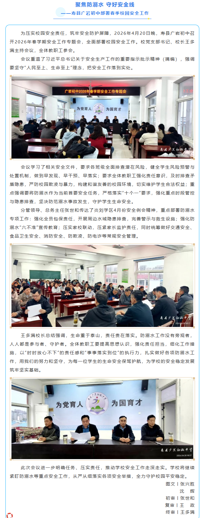 聚焦防溺水 守好安全線丨壽縣廣巖初中部署春季校園安全工作