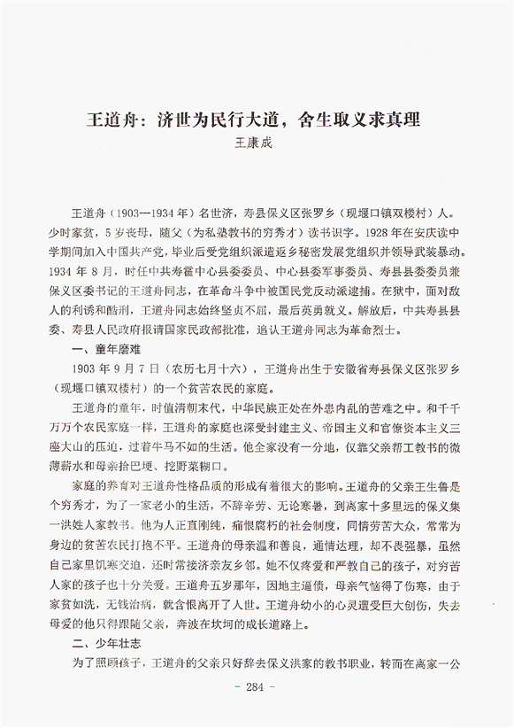 王道舟:濟世為民行大道,舍生取義求真理
