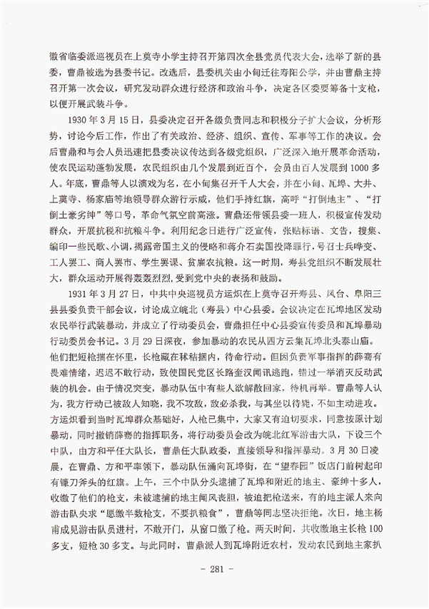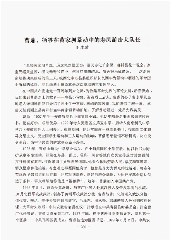 曹鼎,犧牲在黃家壩暴動中的壽鳳游擊大隊長