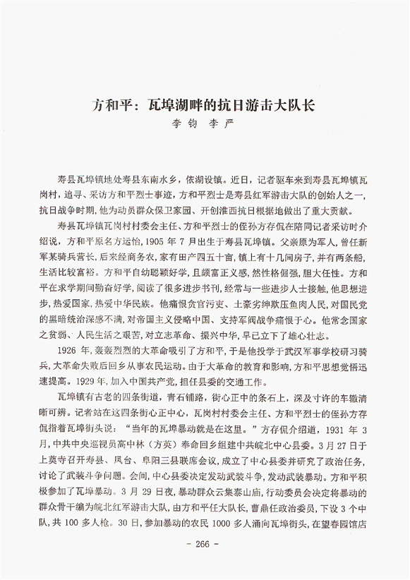 方和平:瓦埠湖畔的抗日游擊大隊長