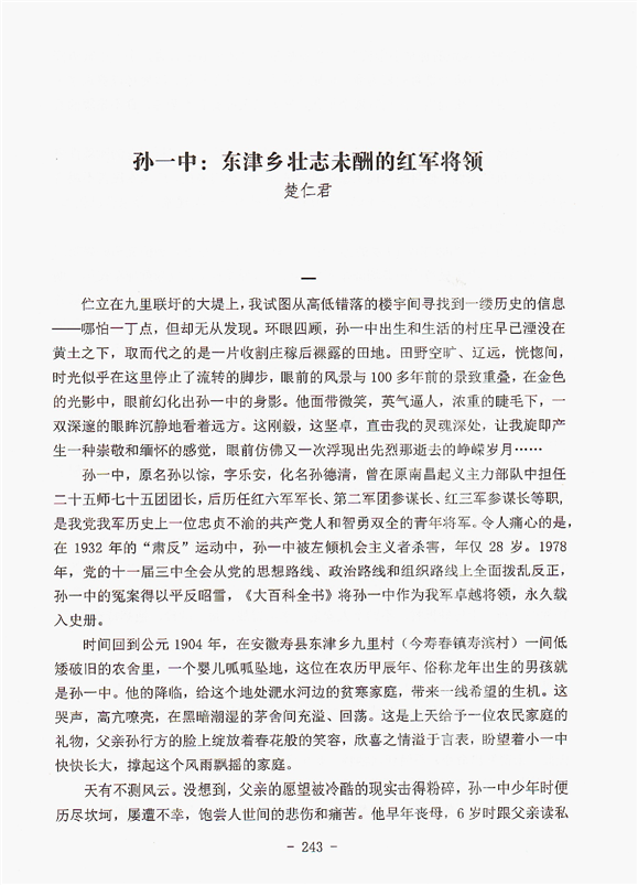 孫一中:東津鄉壯志未酬的紅軍將領