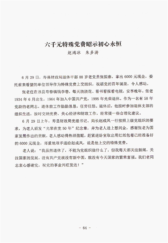 六千元特殊黨費昭示初心永恒