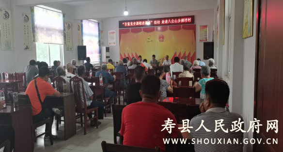 7月15日上午,壽縣縣委組織部、縣委黨校“百年黨史課程進基層”送教活動在八公山鄉郝圩村開展,縣委黨校教研室副主任呂進主講,鄉、村干部及基層黨員到會學習聆聽宣講。