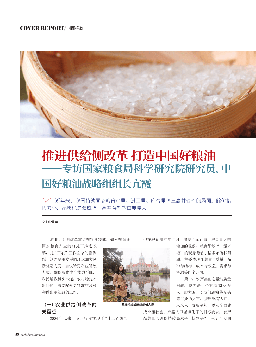 推進(jìn)供給側(cè)改革打造中國好糧油——專訪國家糧食局科學(xué)研究院研究員、中國好糧油戰(zhàn)略組組長亢霞