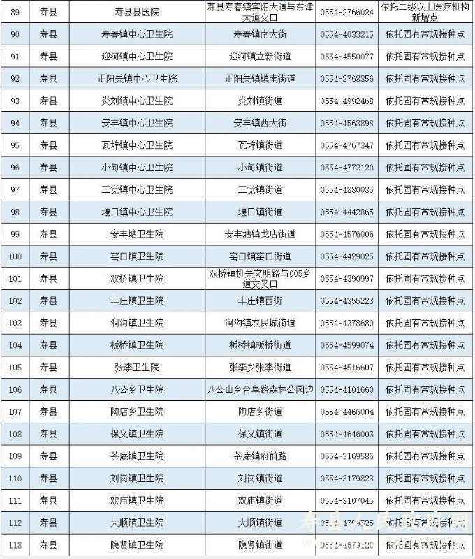 壽縣正陽關鎮枸杞分院預防接種門診 |